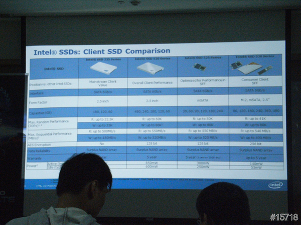 ▼Intel 335、520、525、530四種SSD系列的規格比較表。