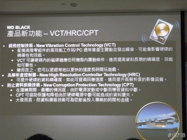 ▼WD Black提供了震動控制技術(VCT)、高解析度控制器(HRC)及防止資料損毀技術(CPT)三種新功能。