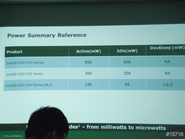▼Intel 520、525、530三個不同系列SSD的耗電比較表。