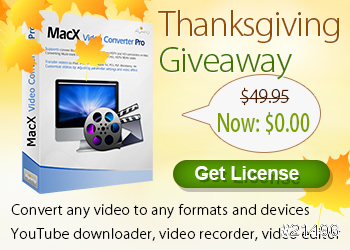 正值感恩節來臨之際,MacXDVD Software免費贈送其主打的視訊轉檔軟體MacX Video Converter Pro(原價49.95美金),免費贈送到2013年12月6日結束。 活動地址:http://www.macxdvd.com/giveaway/giveaway.htm 讚 收藏 快速回應 引言回應