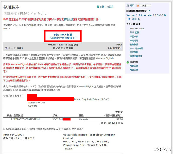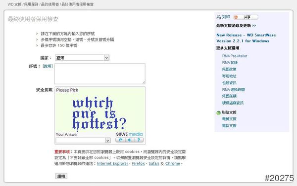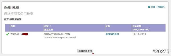 下班回到家....馬上去官網查詢我的WD Passport保固期限到甚麼時候....