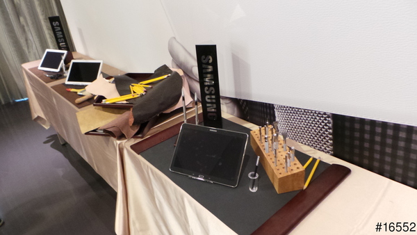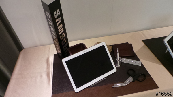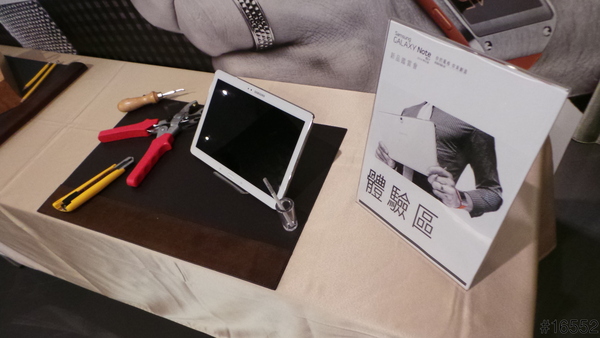 怎麼在體驗區除了Note 10.1以外還放置一些 螺絲起子 剪刀 油漆刷 刀片 螺絲頭組 鉛筆等一些東西呢 不會是請我們拿這些東西來刮這台Note 10.1吧.結果才知道這些是在說明新一代Note 10.1 2014 特仕板新多了如繪畫及素描等這些功能