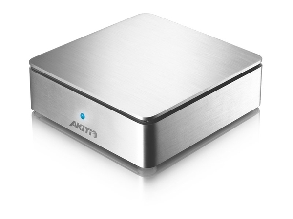 ▲鋁質髮絲紋金屬機殻,正面有 AKiTiO 的品牌 LOGO