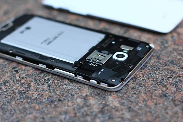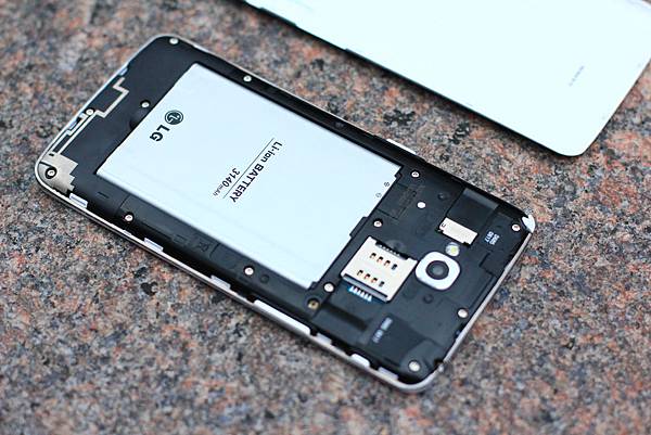 電池蓋內還有雙SIM卡槽、MicroSD卡槽。G Pro Lite機身內建記憶體只有8GB,略顯小了點,還好支援MicroSD卡擴充,可將多媒體檔案等等,都塞入SD卡內。