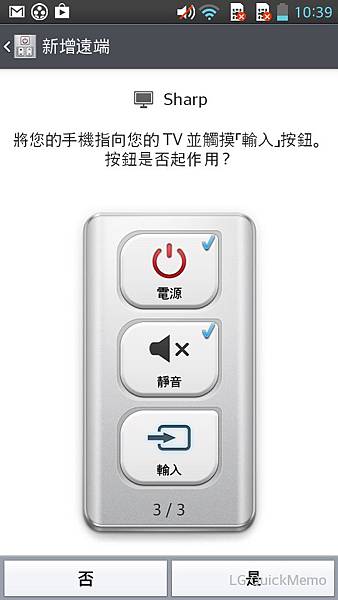 開始設定時,他會請你試試看這三個鍵的功能是否正常?小宇試了三台從舊到新的電池,還有一台背投式電視,都可以成功設定喲!