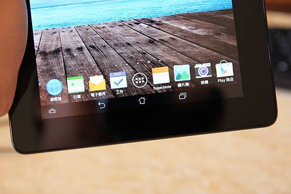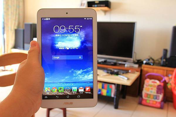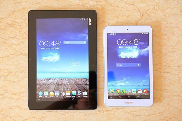 不過TF701t的585g重量,和Memo Pad 8的350g差別可就大了!585g的TF701t一定要兩隻手才能拿起,而350g的Memo Pad 8一隻手就綽綽有餘。像平常在看電視時,我都會隨手帶著Memo Pad 8,等廣告時也能玩平板消遣一下。