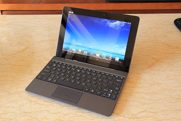 裝上了鍵盤底座的TF701,儼然化身爲一臺小筆電。底座同時也是一大塊的行動電源,平板本身的電池容量就高達8180mAh,加上底座後電量再多一半,就算帶出去工作半天,也綽綽有餘。