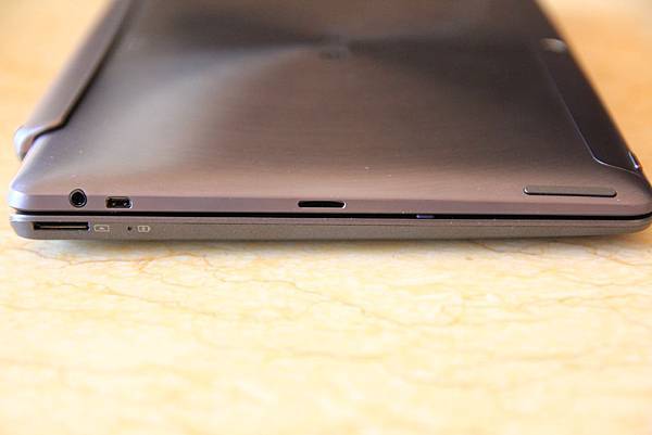 轉到右側,發現了令人意外的SDXC讀卡機和USB3.0插孔,用USB3.0的隨身碟和行動硬碟讀取大型的HD影片都能達到一定的速度。SD讀卡機能讓你在旅行時,隨時將照片放入TF701t的大螢幕觀看