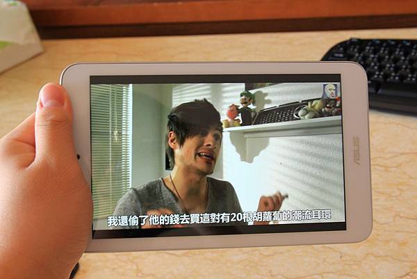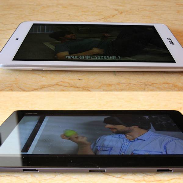 Memo 8的螢幕解析度為1280x800,搭載Splendid技術,使得影像的邊緣更銳利,色彩表現也更加完美。8吋平板,拿來隨身看影片確實方便,然而螢幕大小卻和10吋平板差非常多,爽度大受影響。還好色彩飽和度等等卻都不錯,沒有因為螢幕小而縮減。