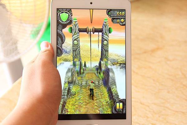 Memo Pad 8採用1.6Ghz四核的處理器。效能如何?小宇拿來跑了Temple Run 2這款簡單的3D遊戲,發現遊戲順暢度十足。看來Memo Pad 7效能雖然略輸TF701t,但休閒遊戲甚至小型3D動作遊戲,都是能順暢執行,沒問題的。