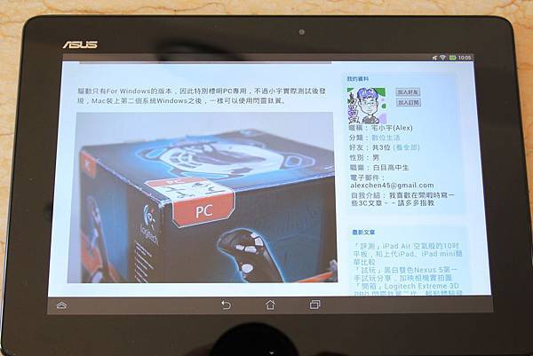 看電腦版網頁時,橫幅使用為主的TF701t也能取得更好的舒適度,好像真的用電腦直接看網頁一樣,觸控板甚至還有滾輪的功能