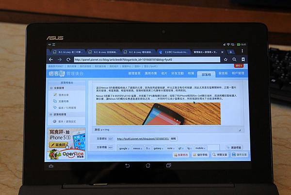 說到網頁,小宇就一定要提一下:TF701t在使用這種網頁內建的文字編輯器時,也是完全沒有問題的!像是小宇平時會用痞客幫的內建編輯器,要改錯字時通常都會用電腦(因為這種網頁文字編輯器,沒有滑鼠或游標真的就無法操作),而開始用TF701t後,此問題當然也得到解決。TF701t可以直接用鍵盤和觸控板順暢的操作痞客幫文字編輯器~!