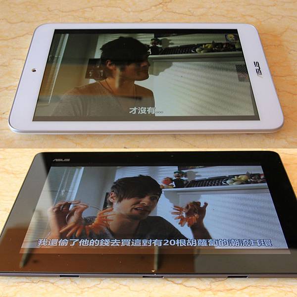 最後來看一下螢幕細節的比對,右邊是Memo Pad 8,左邊是TF701t。TF701t細節很明顯比Memo Pad 8銳利許多