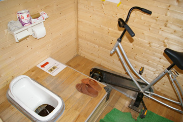 ▲飯豐山住宿小木屋的自力沖水馬桶。