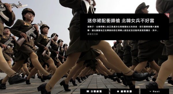 老牌台灣網路媒體蕃薯藤的新嘗試。全中文,以高品質圖片為主。這個網站是本站上線後第二天朋友提供的。看到的時候真的很高興台灣的老牌「新媒體」也早就在做這樣的嘗試了。希望大家也能多支持這個網站,網路媒體一定是需要點擊量才能繼續嘗試新的機會跟改進。個人覺得他們的介面有點太花俏了,一眼能看到的資訊也不夠多。但圖片絕對是高品質,Getty 的圖是真的很貴來著。