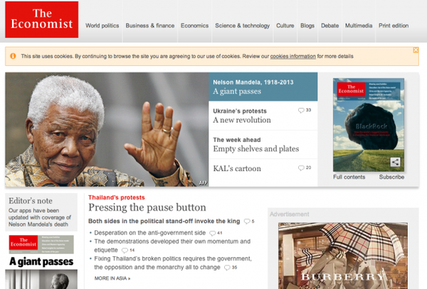 英國老牌媒體,週刊,全英文。經濟學人內容包羅萬象,文章內容品質也高,嚴格點說,如果能靜下心來每週看一本經濟學人,對世界的了解也會有質的提升。不過我相信每個人適合的不一樣,我個人比較適合本站這種大量快速的了解,至少在一開始的時候。也許等我的「世界觀」建構的比較完整了,我會需要更深入的內容。