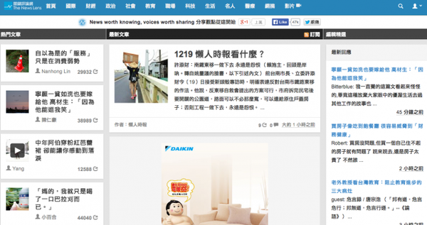 這個網站主要想做到的是台灣的 Huffington Post,基本上就是由部落客組成的新聞頻道。我自己覺得立意非常好,也由衷的佩服。舉例來說,我自己每每 fb 上看到朋友分享「清大彭明輝的部落格」的內容是都會覺得台灣還是好有希望。有能力有想法的人好多,只是都被埋住了。(彭明輝教授貌似沒有在關鍵評論網上,我舉這個例只是想表達優秀部落客的內容絕對可以成為好的知識、新聞來源)