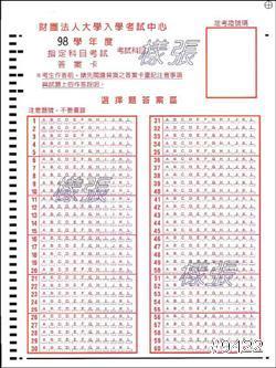 好吧~ 我承認我是那種不看書也可考前三名的學生,因此當學校有模擬考的時候,別人都是苦瓜臉,我卻相當開心,因為趕快畫完就可以趴下來睡覺了。不過馬有失蹄、人有失足、雷公釘釘子也會釘到手,曾經眼殘看歪了1格,接下來就全部畫錯,當期模擬考分數就非常慘烈。