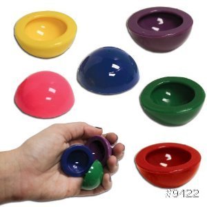 小時候不知道為什麼,總是對可以吸在身上的玩具特別有興趣。像是圖片這種玩具,原本將其翻過來放在地上,過一會兒會自動回復並跳起來,但其橡膠的回覆力驚人,便有小朋友將它倒過來吸在身上,隔天上學時就可以看到手背上青一塊紫一塊的(部分應該是長條紅色狀……被打啦)。