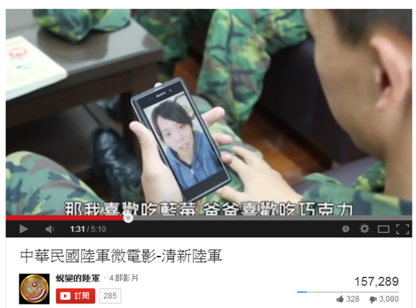 國軍一直在扭轉形象(或是想藉此招攬志願役) 前陣子發表一系列[中華民國陸軍微電影] 中華民國陸軍微電影-清新陸軍 中華民國陸軍微電影-革新陸軍 中華民國陸軍微電影-溫心陸軍 中華民國陸軍微電影-嶄新陸軍 就拿清新陸軍來說好了 影片中強調可以用智慧型手機 有交誼廳可以看看書(還有吉他) 寢室一床一櫃一書桌 有冷氣 豐富的自助餐廳 咖啡廳環境 你心動了嗎XDDD 讚 收藏 快速回應 引言回應
