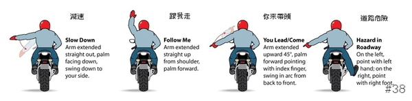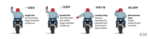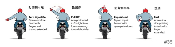 單車或是重機結伴出遊時,隊友之間總會需要一些手勢來溝通。下面就是一些國際通用的手勢