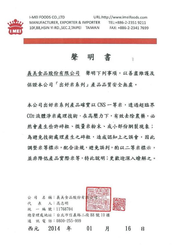 義美在不少消費者心中的評價頗高,但到底是不是一等米不是廠商自己說了算,