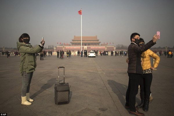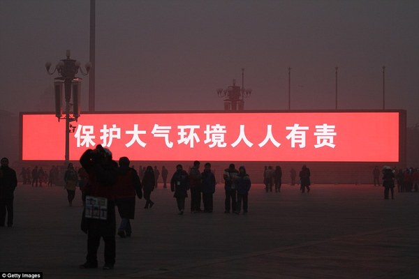 如果看數字沒有感覺的話,直接看圖最快,能見度超低的情況下,讓政府不得不藉由科技的方式,在天安門廣場架設巨型 LED 電視牆,播放虛擬的日出日落。