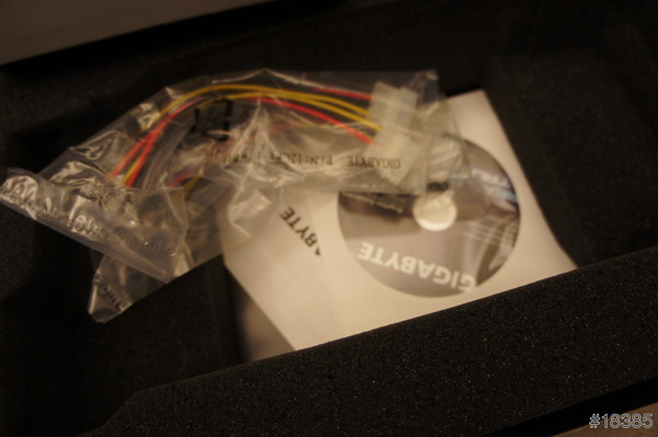 拿出顯卡後,底下是放配件的地方,有兩條大4 PIN轉8 PIN的轉接線、驅動光碟與說明書