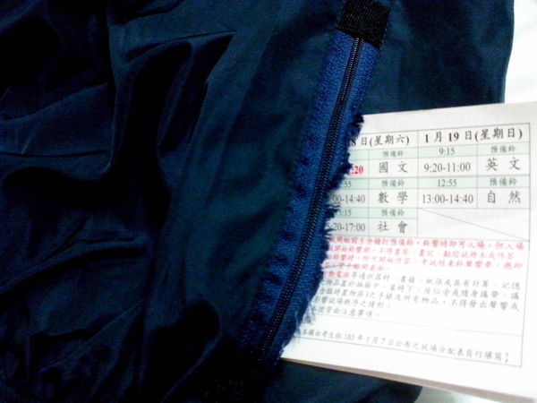 考試前10分鐘,已經在教室外面了,想說在檢查一下口袋裡的文具和准考證是否還在