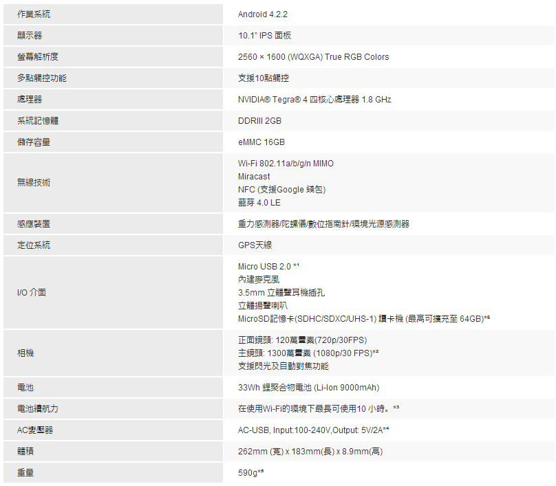 就規格來說都算是頂尖的規格了,甚至解析度就 Android 平板而言,除了 SAMSUNG GALAXY Note 10.1 2014 特仕版以及未上市的 Nexus 10 外,沒有其他平板擁有這麼高解析度的螢幕。