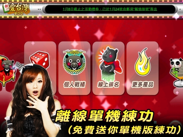 讓您在連線時跟牌友廝殺離線時單機版練功,正花正字正港台灣味,台灣人就一定