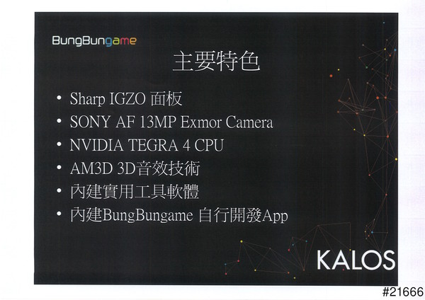 今天是1/18,心中渴望的已久的日子終於來到了,很高興可以參加這次的BungBungame KALOS平板發表會。經過櫃台審合資格,坐在主辦單位精心策劃的會場裡內心充滿了期待及興奮心情等待新品介紹的正式活動的來臨。