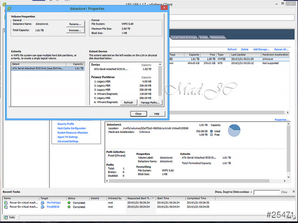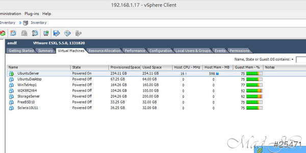 和大家使用的桌上型系統不同,ESXi伺服器換上WD RE硬碟不會有大幅度的效能提升,但是高穩定性與高容量,讓原本的虛擬機數量可以提升不少,也比較用不擔心硬碟出問題。提升容量之後,不僅每個虛擬機能夠搭配更多的儲存空間,也能安裝更多套的系統,偶爾想要試一下不同的作業系統,立即就可安裝。有時想要試試一些軟體,又怕有問題或是病毒等危險,也可以丟在虛擬機上運作。