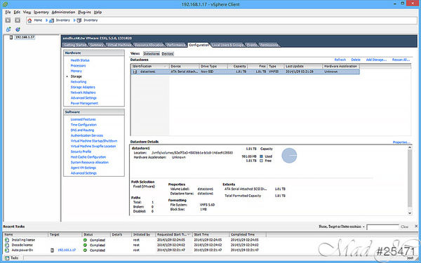 遠端管理程式vSphere Client可以看到1.8TB的可用空間