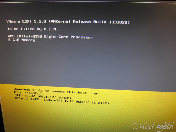 在眾多的產品當中,個人選擇了VMware vSphere Hypervisor(ESXi)做為虛擬伺服器系統,只要註冊就可以取得免費版本!ESXi其實很挑硬體,尤其是網路卡,系統沒有支援的網卡時連安裝都無法完成,還好手邊剛好有一片主機板有支援,不必插上額外的網路卡。