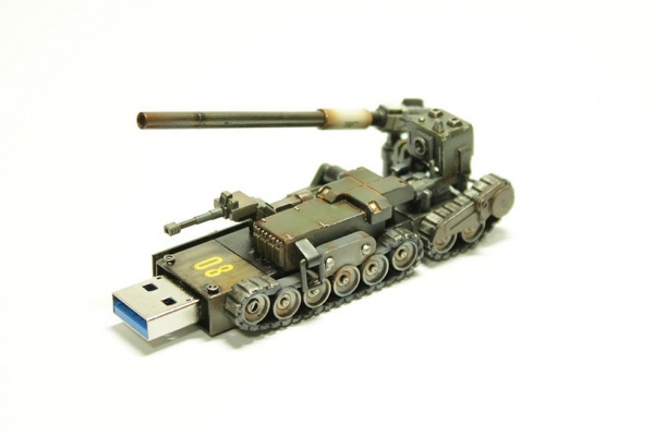 需要指出的是,池内启人所设计这一电脑MOD每一个部件的具体功能都等待用户自己去发掘。比如,图中这个炮筒造型的玩意儿实际上是一个外置U盘,而另一个坦克模样的东西则是鼠标。