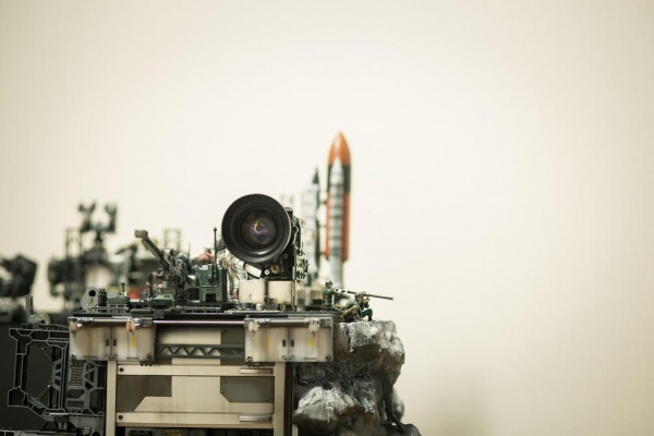 这一“秘密基地”的确具备了一个军事基地的所有必要元素,各种设施、装备、武器、士兵一应俱全,甚至还有一架航天飞机以及单反镜头做成的激光炮,就连键盘、鼠标、USB Hub、U盘这些附件都经过了精雕细琢的设计。