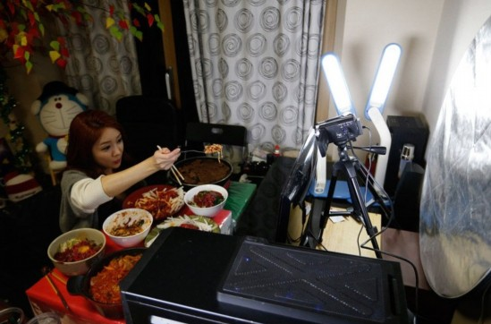 韓國興起一股美食偷窺風潮,很多人熱衷在鏡頭前直播“用餐秀”,目前約有3500人演出這類“吃東西實況秀”。