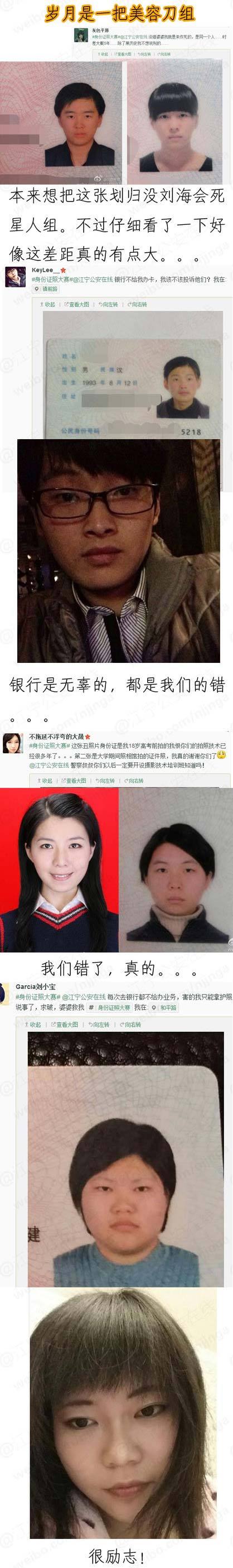 中國網站最近流行「曬身份證照片」,讓網友來評評理看看自己的身份證照片與本人的差異。