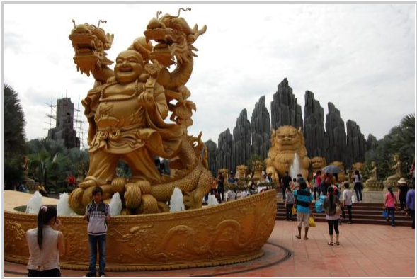 越南有座「仙泉主題樂園」,整個主題遊樂園都是以佛教人物來貫穿的。網友列舉應該去這個主題公園看看的理由包括:這可能是唯一一座佛教主題公園、裡頭金光閃閃,色彩非常鮮艷、有非常廣大的人工沙灘,還有神佛在頭頂上看著你、可以提前步入極樂世界~