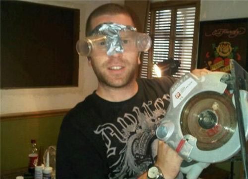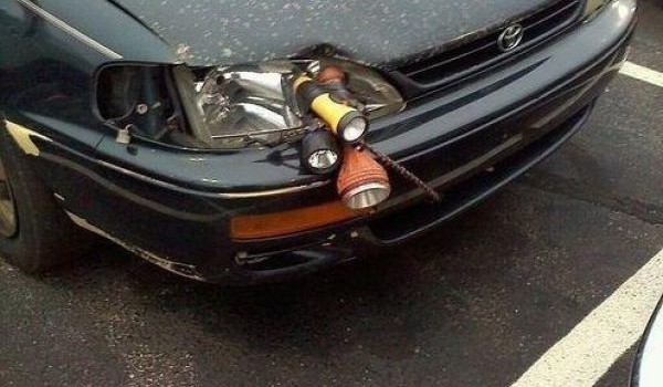 ▲三隻手電筒組成的三眼頭燈,夠有霸氣吧!