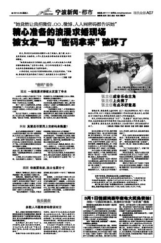 27歲的小李經人介紹認識了目前的女友小宋。上周日,家住在鄞州的小李專門招呼好朋友過來幫忙,他准備向相戀一年多的女友小宋求婚。