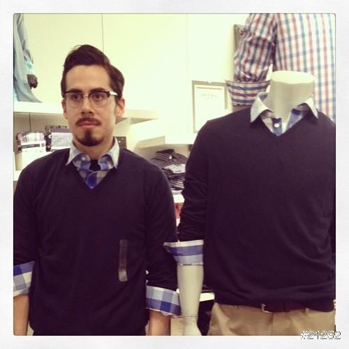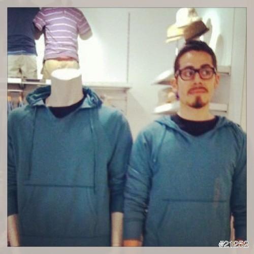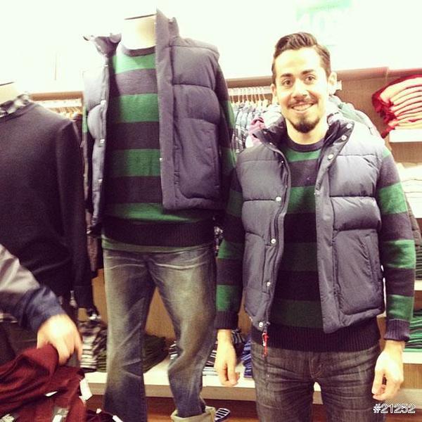 這位加拿大溫哥華的Steve Venegas也覺得Gap不太好逛,某天在Gap內等待老婆試衣太無聊,忽然靈機一動,決定自己也來試穿!特別的是,他刻意挑選與店內假人模特兒一樣的衣服,試穿完成後,站到模特兒旁擺出一樣的姿勢並拍下合照,還將這些照片上傳至網路和大家分享,簡單卻充滿趣味的照片,立刻吸引眾多網友關注,甚至連Gap都主動上門和他聯絡!