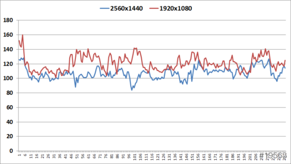 Titan Black跑「惡魔城:闇影主宰2」應該是毫無壓力的,因此畫質設定全部調成最高,高清材質包也一併開啟。可以從下圖中看得出來,即使是2560x1440解析度之下,依然幾乎都是破百的幀數。其實這結果是可以預期的,哥只是想假借燒機的名義來試試看當土豪的滋味lol