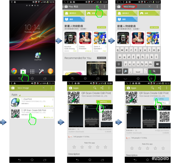 開啟Google Play Store並且搜尋teco image,選擇QR掃瞄器即可下載安裝。