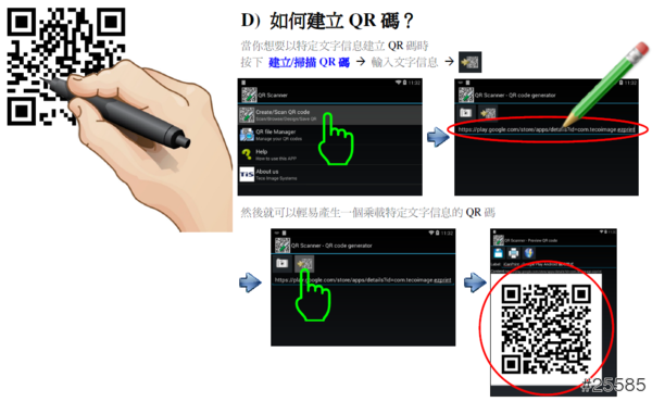 1. 建立/掃描QR碼:掃描QR取得資訊或建立自己的QR碼