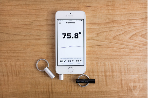 Thermodo 外觀和米鍵一樣,將它插入手機的耳機接口就可以隨插即用。裡面配有一個感應器,無論你可以檢測你所在地的氣溫。搭配 Thermodo APP,可以用來讀取溫度,顯示溫度變化。