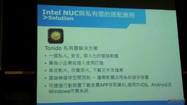 並且Intel也提供私有雲(Tonido)給NUC的使用者能將個人的影片、照片與文件上傳至此無限制的儲存空間
