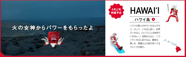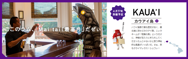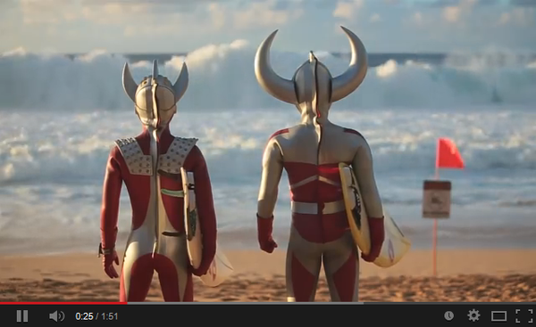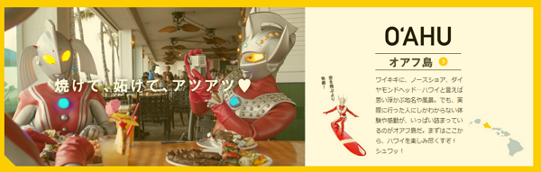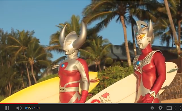 超人力霸王(鹹蛋超人)的母公司圓谷製作所最近幫他們接下了一項金額應該不小的代言活動,就是幫夏威夷旅遊局代言旅遊活動。 整個活動不但建立起跟著超人力霸王去夏威夷旅遊的官網,而且還拍了很多放在Youtube上的視訊廣告。主題是以超人力霸王一家人出遊為主,不過也夾帶了兩三隻怪獸跟著他們一起去夏威夷度假。 你甚至還可以看到鹹蛋版的海灘男孩: 官網:http://www.ultrahawaii.jp/ 讚 收藏 快速回應 引言回應