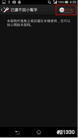 步驟二:設定好後, 當有LINE 或 Facebook 訊息來時,就可以點開通知欄「已讀不回小幫手」查看內容,對方的LINE對話中仍顯示未讀。(注意,如果是傳圖片就無法在小幫手內顯示。)